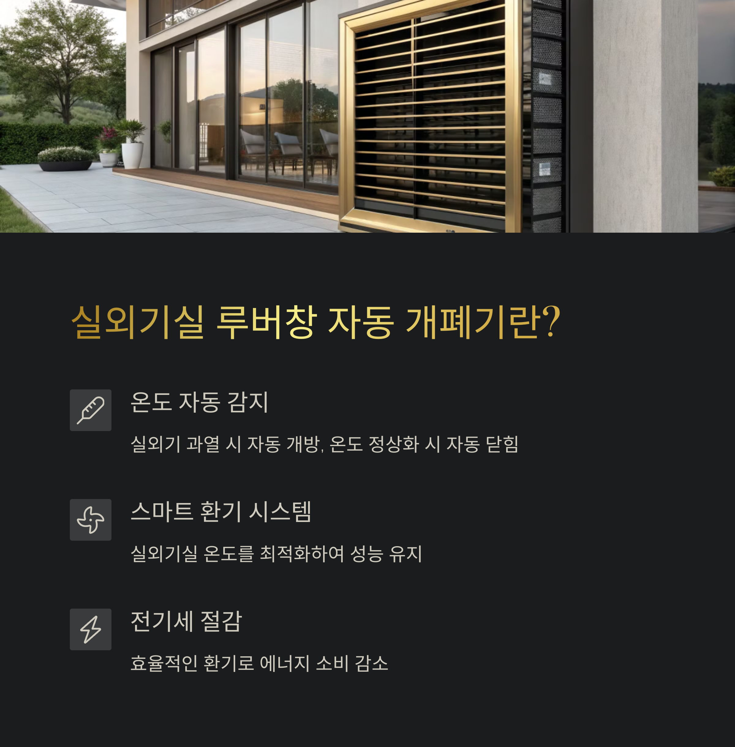 일렉세이프 루버 자동개폐기는 실외기실 화재예방을 위한 최적의 제품입니다.