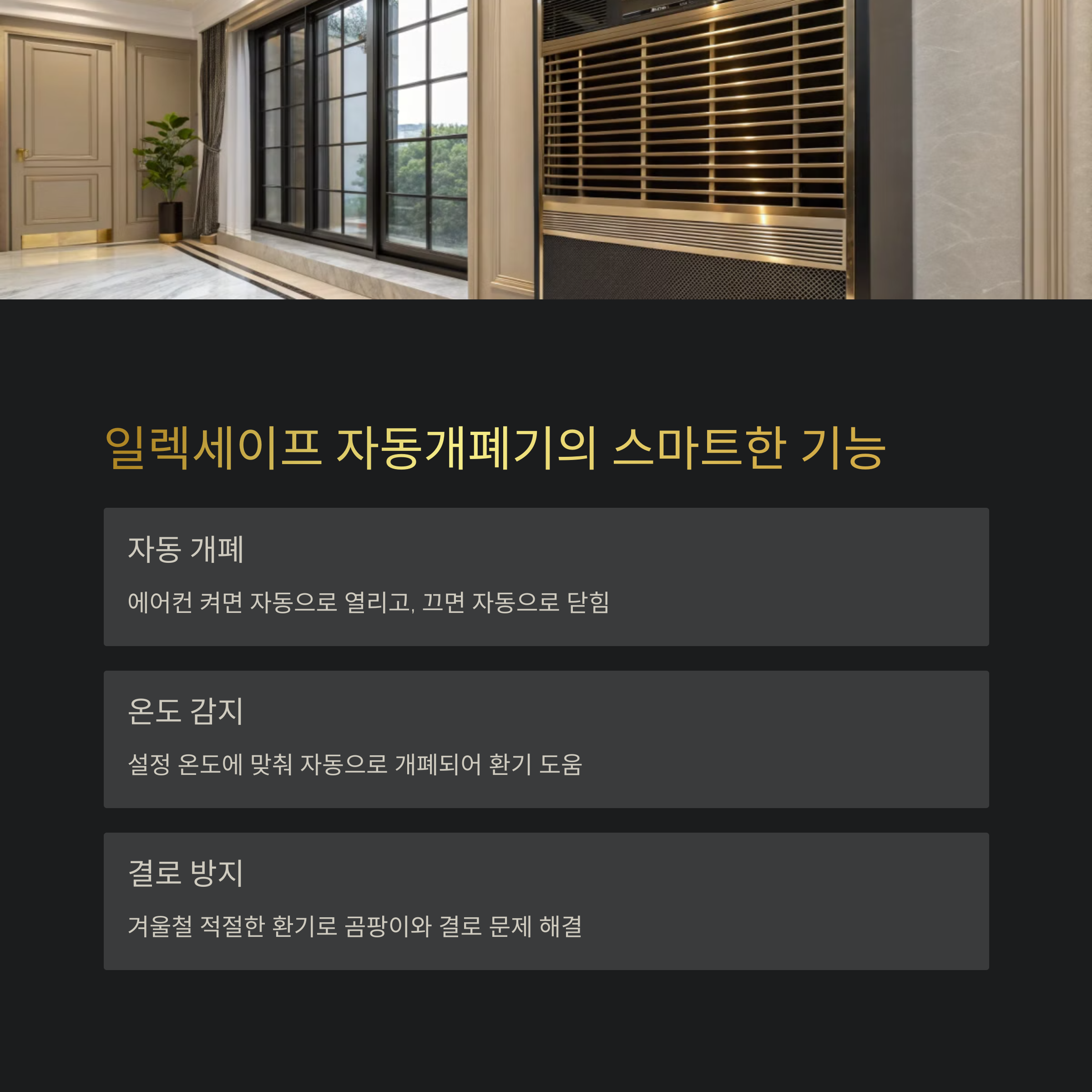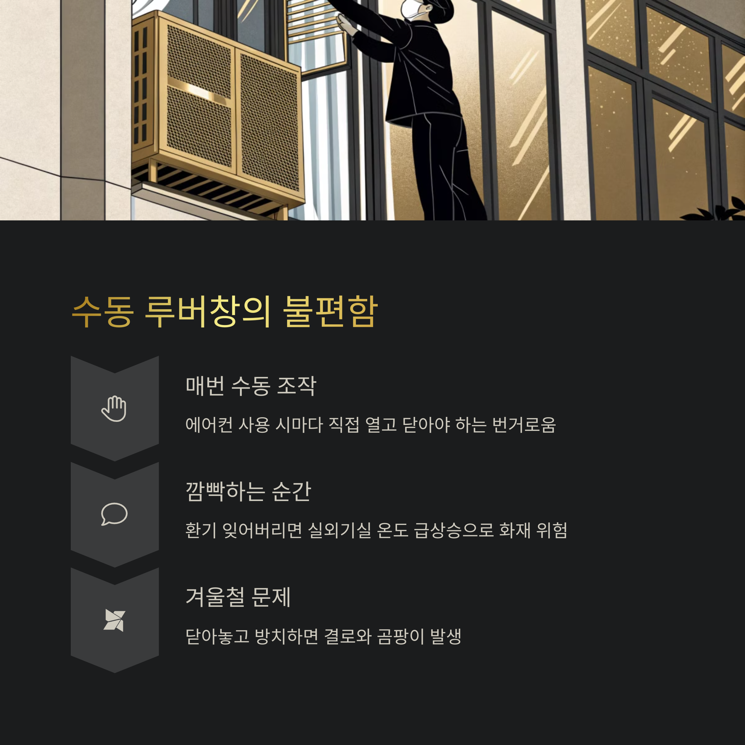 이러한 실외기실 화재 예방에 최선의 선택은 일렉세이프 루버 자동개폐기입니다.